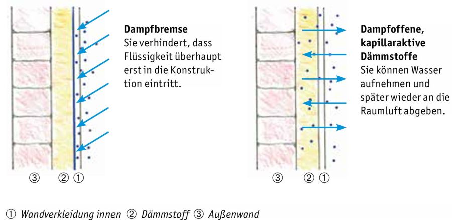 Aus bauphysikalischer Sicht lassen sich Innendämmungen danach einteilen, wie sie mit der wichtigsten Herausforderung − eine kalte Außenwand von innen dämmen − umgehen: also mit Kondenswasser.