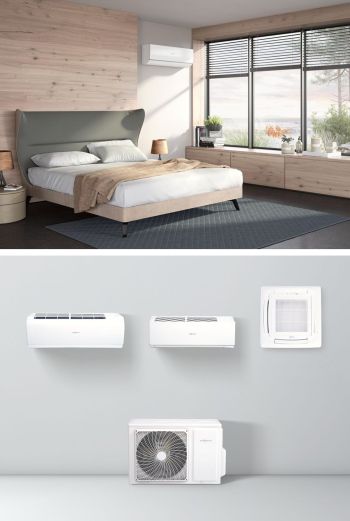 Ist die Heizfunktion aktiviert, wird die kleine Inneneinheit eines Split-Klimageräts zum „Heizkörper“: Mit seinen kompakten Lamellen-Wärmetauschern entspricht die Fläche, die zur Wärmeübertragung genutzt werden kann, je nach Leistung rund sieben bis zwölf Quadratmeter – das ist deutlich mehr als jeder konventionelle Heizkörper zu bieten hat. Dazu kommt ein integrierter Lüfter, der die Wärme schneller verteilt und dadurch die nötigen Systemtemperaturen nochmals senkt.
