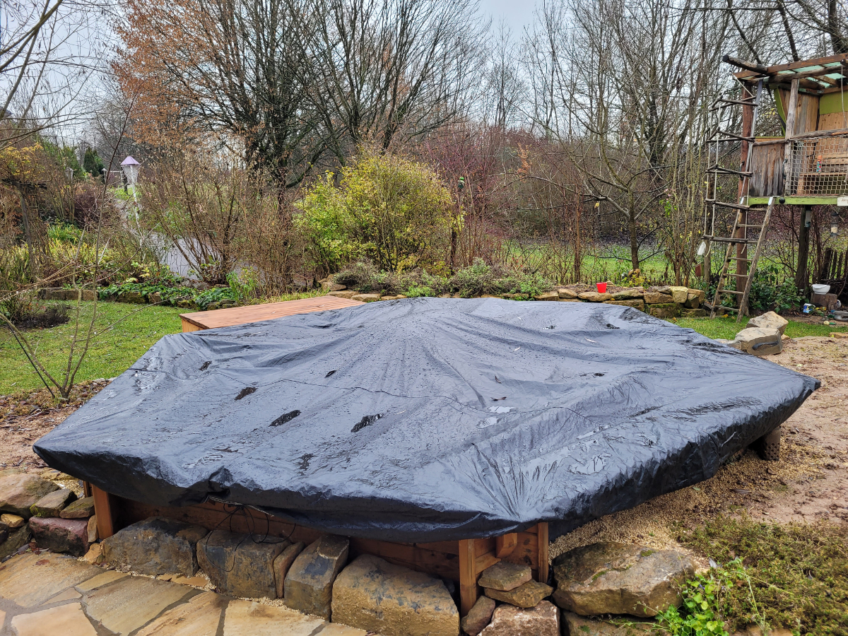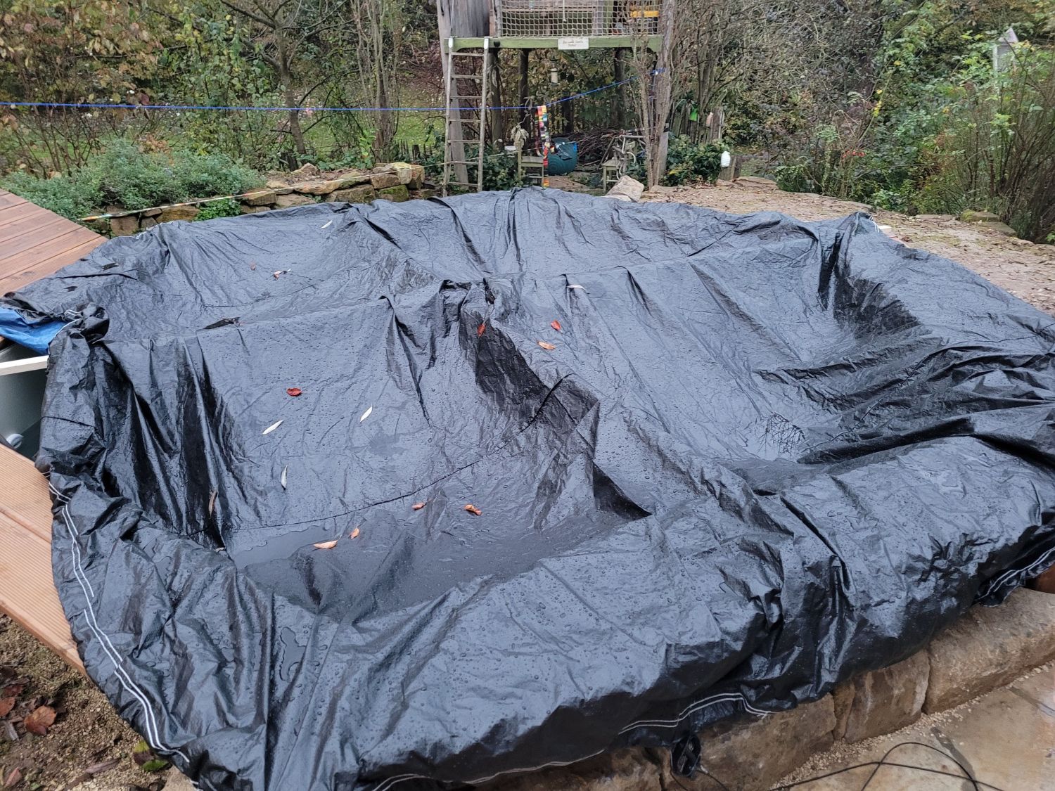 Achten Sie darauf, dass das Regenwasser gut abfließen kann, ansonsten bilden sich schnell große Wasserpfützen auf der Abdeckplane.