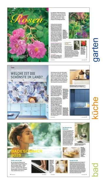- Wohnen & Einrichten (authentische Wohnreportagen in jeder Heftausgabe, aktuelle Trends und Innovationen, praktische Einrichtungstipps)